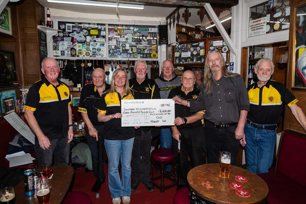 Current Hosts Colin and Cath produced the unique 2025 tee-shirt, which once again proved to be extremely popular being despatched worldwide, along with the other usual fundraisers and loose change donations and the Old Market ‘Regulars and Fans’ raised the magnificent sum of £3,000.00 for the Southern 100 Supporters Club.